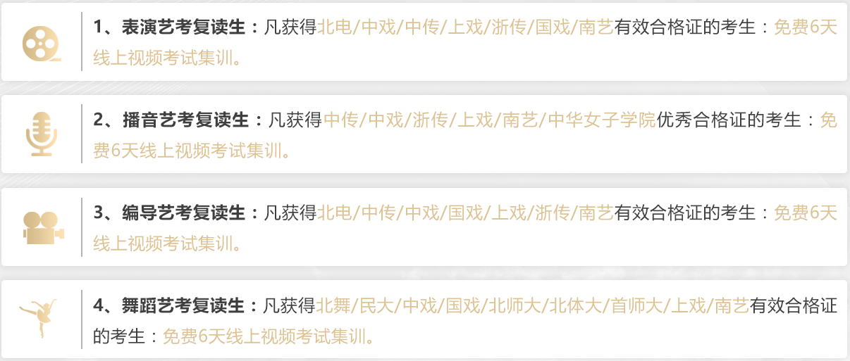 特邀中戏、北电、中传等名校专家坐镇指导,提醒各院校考试侧重点。
